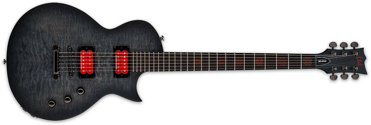 Ben Burnley é o fundador da banda de rock/metal alternativo Breaking Benjamin, que leva o mesmo nome, e sua guitarra LTD Signature Series, a BB-600 Baritone, é a força motriz das criações musicais deste vocalista. A BB-600B é um dos modelos exclusivos mais versáteis já fabricados pela ESP. Ela inclui dois tipos distintos de captadores: um par de captadores magnéticos de alta qualidade (com um conjunto composto por Seymour Duncan '59 e JB), bem como uma ponte e um tailpiece Graph Tech Ghost-Loaded Resomax NV que oferecem um captador piezo integrado. O BB-600B também inclui duas tomadas de saída, permitindo-lhe encaminhar o sinal dos captadores magnéticos padrão para um amplificador e o captador piezoelétrico para outro, para uma versatilidade incrível no palco ou em estúdios. Mais do que apenas sonoramente flexível, o BB-600B é um instrumento incrível também em outros aspectos. Com um corpo Eclipse single cut e construção set-thru, a BB-600B é uma guitarra barítona com escala de 27", permitindo afinação mais grave sem sacrificar a tensão ideal das cordas. Seu corpo em mogno tem o tampo em quilted maple em um incrível acabamento See Thru Black Sunburst Satin. Ela oferece um braço em maple com perfil fino em "U" para uma sensação confortável ao tocar. A estética desta guitarra é complementada com captadores vermelhos personalizadas, incrustações vermelhas no braço com o símbolo da Breaking Benjamin e um logotipo LTD vermelho. Tudo isso acomodado em um lindo hard case ESP.