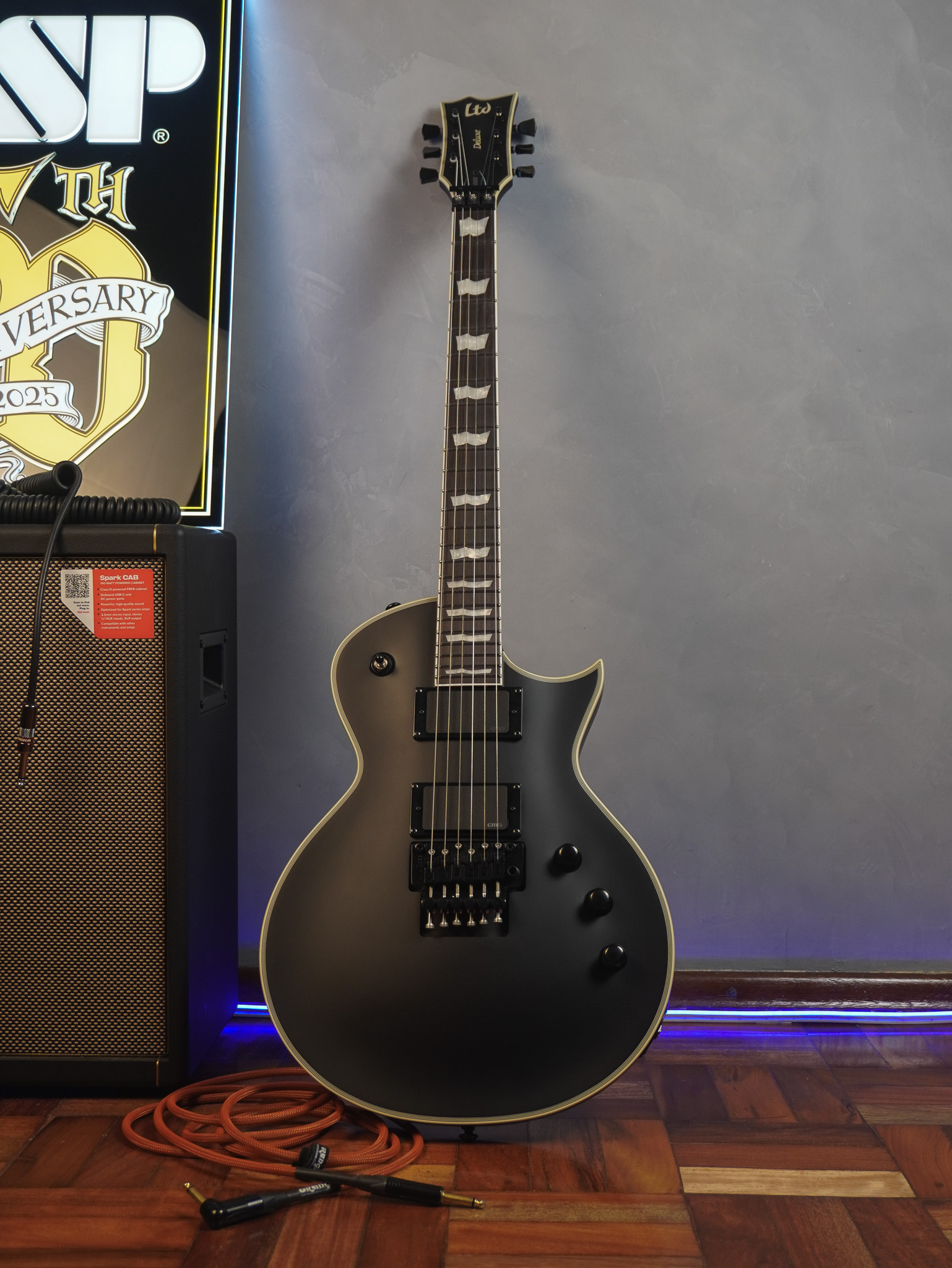 Com o conjunto de captadores ativos EMG 60 (braço) e EMG 81 (ponte), esta guitarra oferece uma gama de timbres excepcionais e agressivos, ideais para o rock e metal. O acabamento acetinado Black Satin confere um visual moderno e elegante, complementando sua sonoridade potente e versátil.