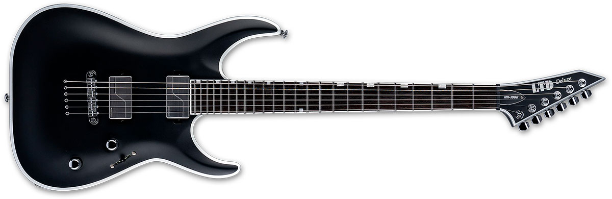 Como parte da série LTD Deluxe projetada para músicos profissionais, a LTD MH-1000 NT Bold Binding oferece mais do que você esperava. Ela oferece construção set-thru, o que significa que o braço se estende profundamente na cavidade do corpo da guitarra, oferecendo acesso incomparável aos trastes superiores. Possui corpo em mogno com acabamento Black Satin. Ela também possui o braço de maple "thin U" shape e uma escala em ébano com 24 trastes extra-jumbo em aço inóx. A MH-1000 NT Bold Binding vai te levar para um outro nível, com o conjunto de captadores ativos Fishman Fluence Modern para timbres que vão de limpos cristalinos, a timbres muito agressivos. Finalmente, a ponte TonePros Locking TOM c/ String Thru garante que em todas as condições, sua guitarra permaneça em perfeita sintonia e tenha uma entonação incrivelmente precisa em todos os pontos do braço.