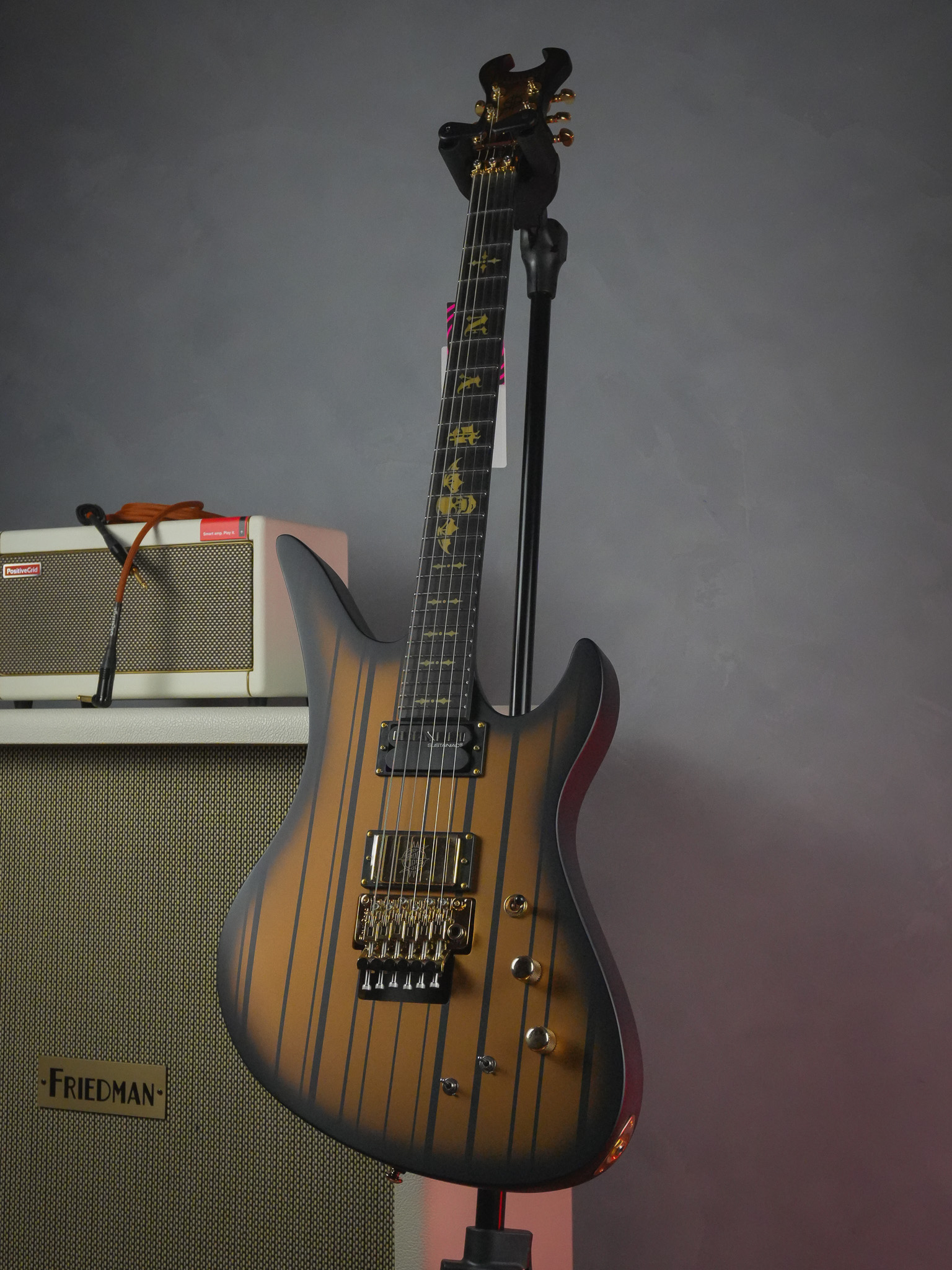 Inspirada na guitarra usada por Synyster Gates no palco, esta versão customizada oferece timbres pesados e vem com assinatura original do artista.